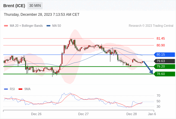 在 80.15 之下,看跌,目标价位为 78.60 ,然后为 78.00 。