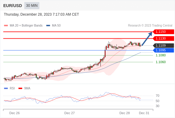 在 1.1095 之上,看涨,目标价位为 1.1130 ,然后为 1.1150 。
