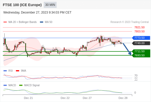 英国富时100指数期货 当日内: 看跌,在 7773.50 之下。