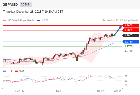 在 1.2780 之上,看涨,目标价位为 1.2830 ,然后为 1.2850 。
