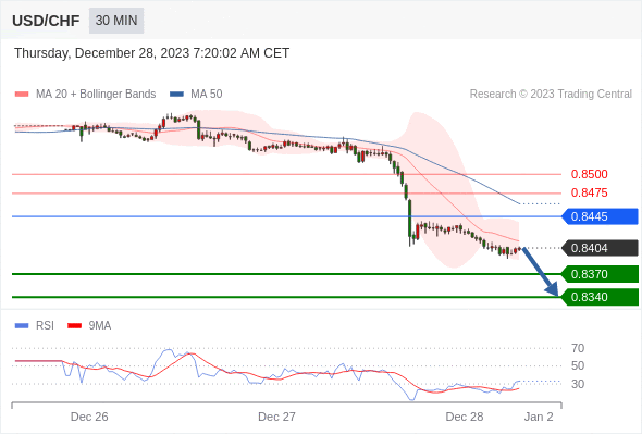 在 0.8445 之下,看跌,目标价位为 0.8370 ,然后为 0.8340 。