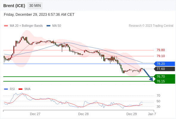 在 78.20 之下,看跌,目标价位为 76.70 ,然后为 76.15 。
