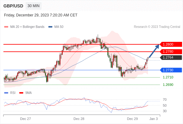 在 1.2730 之上,看涨,目标价位为 1.2780 ,然后为 1.2800 。