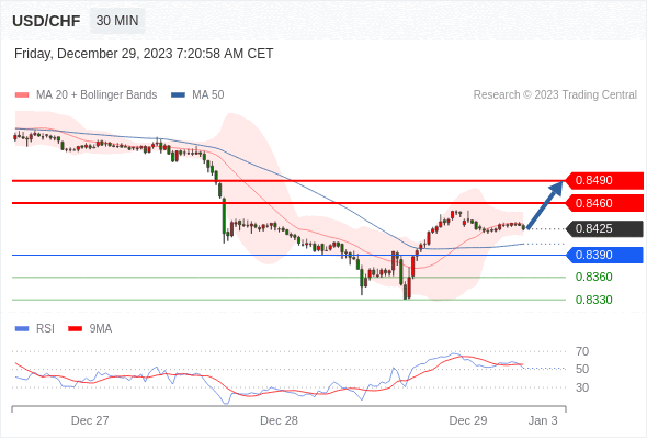 在 0.8390 之上,看涨,目标价位为 0.8460 ,然后为 0.8490 。
