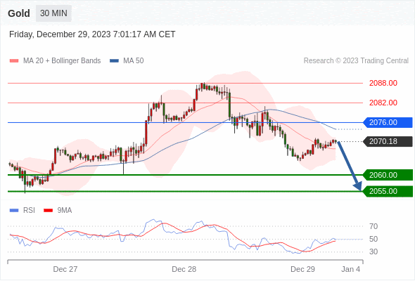 在 2076.00 之下,看跌,目标价位为 2060.00 ,然后为 2055.00 。