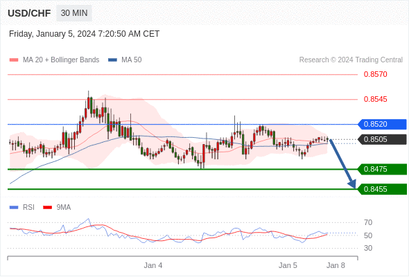 在 0.8520 之下,看跌,目标价位为 0.8475 ,然后为 0.8455 。