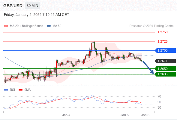 在 1.2700 之下,看跌,目标价位为 1.2650 ,然后为 1.2635 。