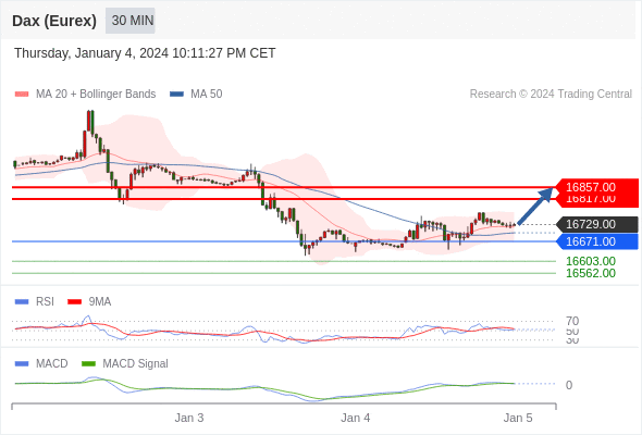 德国DAX指数期货 (Eurex)? 当日内: 看涨,当 16671.00 为支撑位,目标定在16857.00。
