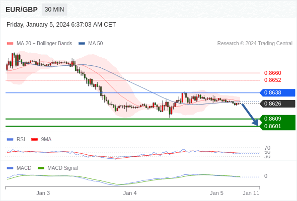 欧元/英镑 当日内: 看跌,在 0.8638 之下。