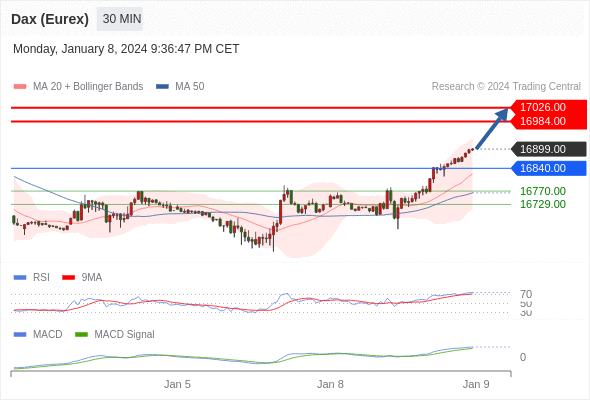 如跌破 16840 ,德国DAX指数期货 (Eurex) 目标方向定在 16770 和 16729 。
