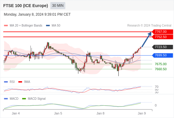 英国富时100指数期货 当日内: 看涨,当 7699.50 为支撑位。