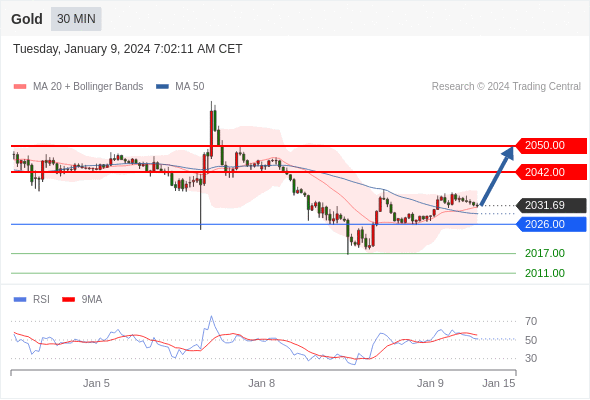 在 2026.00 之上,看涨,目标价位为 2042.00 ,然后为 2050.00 。
