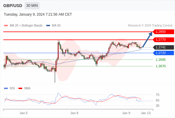 在 1.2720 之上,看涨,目标价位为 1.2770 ,然后为 1.2800 。