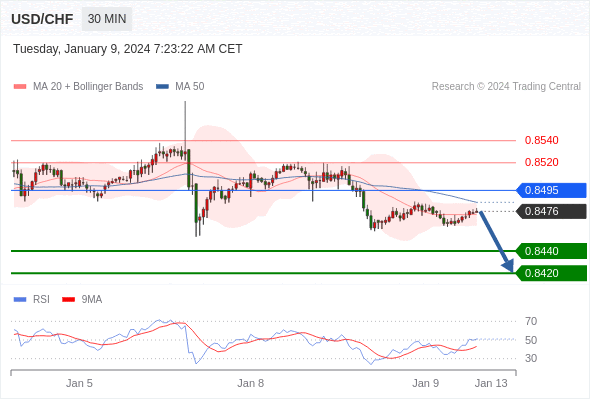 在 0.8495 之下,看跌,目标价位为 0.8440 ,然后为 0.8420 。