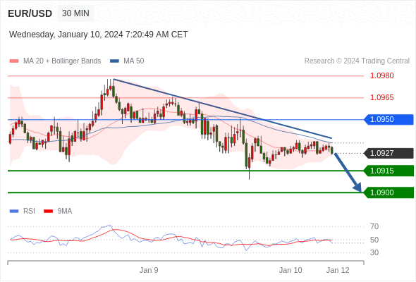 在 1.0950 之下,看跌,目标价位为 1.0915 ,然后为 1.0900 。