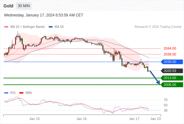 在 2030.00 之下,看跌,目标价位为 2013.00 ,然后为 2006.00 。