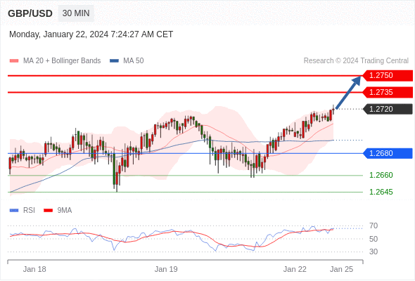 在 1.2680 之上,看涨,目标价位为 1.2735 ,然后为 1.2750 。