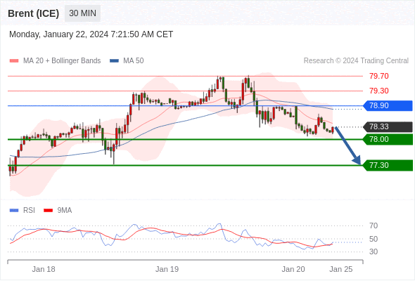 在 78.90 之下,看跌,目标价位为 78.00 ,然后为 77.30 。