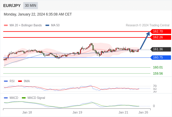 向下跌破 160.75 ,将带来继续下跌的趋势,目标位为 160.01 然后为 159.56 。