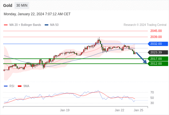 在 2032.00 之下,看跌,目标价位为 2017.00 ,然后为 2012.00 。