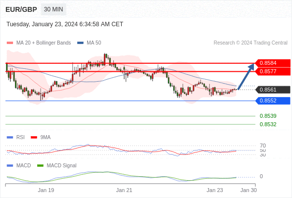 如跌破 0.8552 ,EUR/GBP 目标方向定在 0.8539 和 0.8532 。