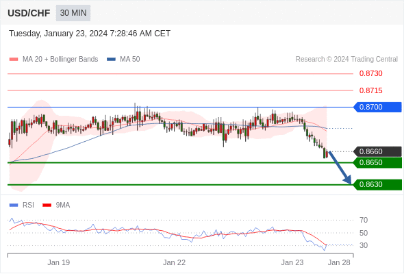 在 0.8700 之下,看跌,目标价位为 0.8650 ,然后为 0.8630 。