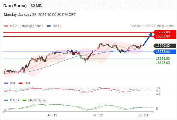 德国DAX指数期货 (Eurex)? 当日内: 看涨,当 16733.00 为支撑位。
