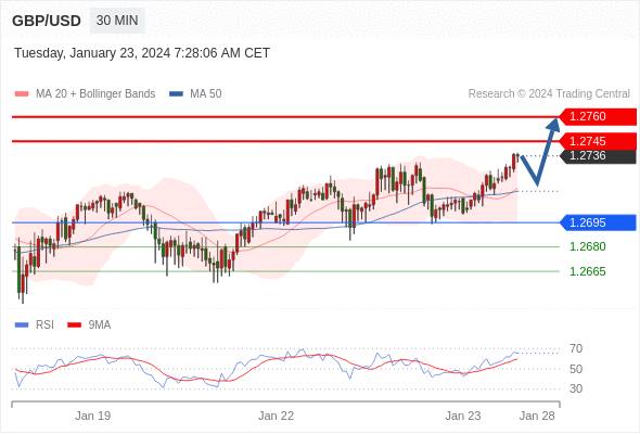 在 1.2695 之上,看涨,目标价位为 1.2745 ,然后为 1.2760 。