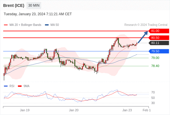 在 79.50 之上,看涨,目标价位为 80.50 ,然后为 81.00 。