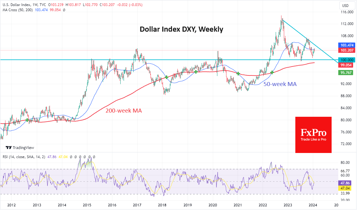 这两个因素都看好美元,并预示着经济将进一步增长。之前的显著盘整价位分别为113和106,这分别是2022年和2023年的关键水平。