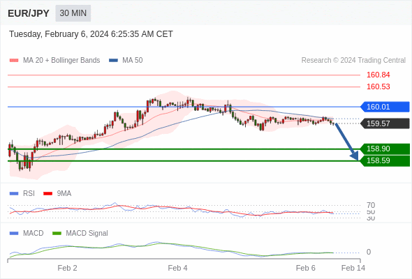 欧元/日元 当日内: 看跌,在 160.01 之下。