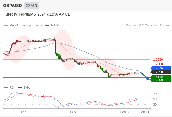 英镑/美元 当日内: 短期关键阻力位在1.2575。
