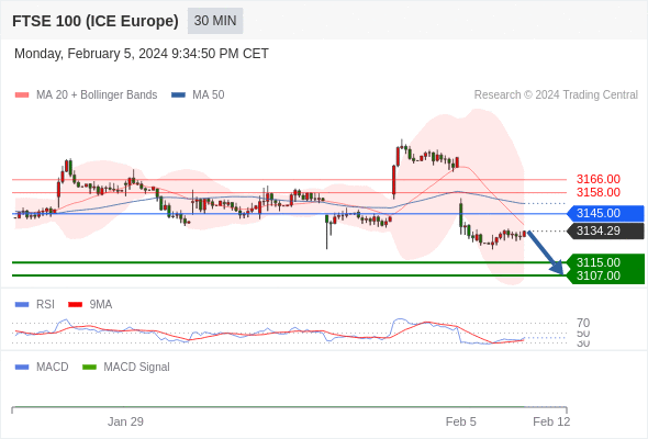 英国富时100指数期货 当日内: 看跌,在 3145.00 之下。