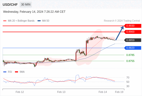 在 0.8820 之上,看涨,目标价位为 0.8900 ,然后为 0.8930 。