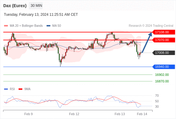 在 16940.00 之上,看涨,目标价位为 17070.00 ,然后为 17108.00 。