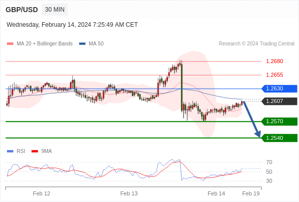 在 1.2630 之下,看跌,目标价位为 1.2570 ,然后为 1.2540 。