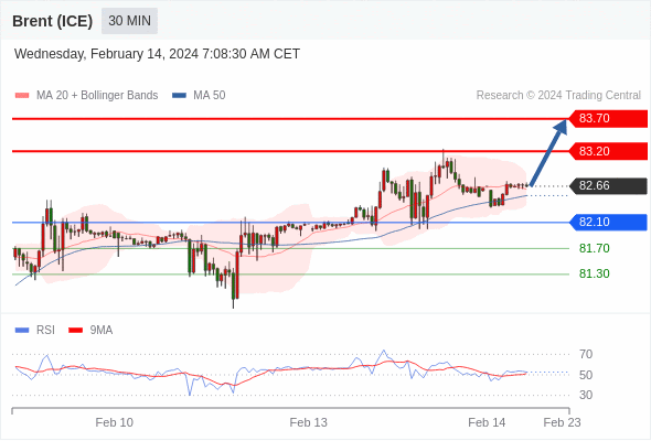 在 82.10 之上,看涨,目标价位为 83.20 ,然后为 83.70 。