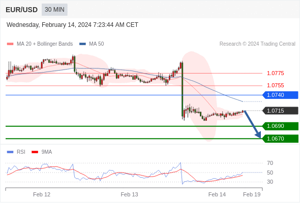 在 1.0740 之下,看跌,目标价位为 1.0690 ,然后为 1.0670 。