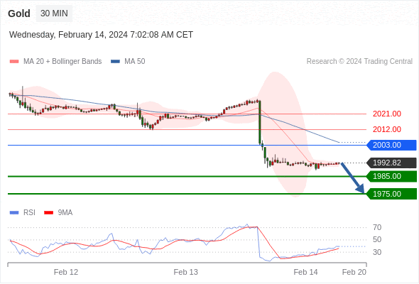 在 2003.00 之下,看跌,目标价位为 1985.00 ,然后为 1975.00 。