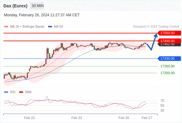 在 17330.00 之上,看涨,目标价位为 17490.00 ,然后为 17560.00 。