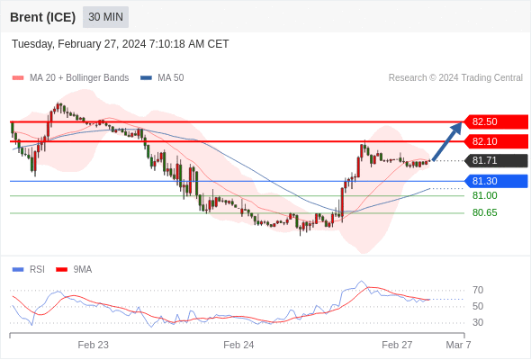 在 81.30 之上,看涨,目标价位为 82.10 ,然后为 82.50 。