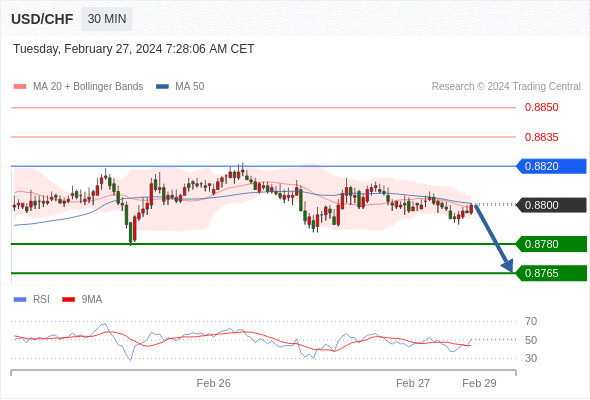 在 0.8820 之下,看跌,目标价位为 0.8780 ,然后为 0.8765 。