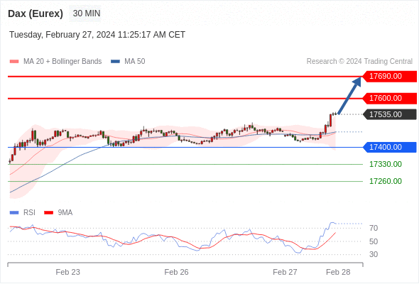 在 17400.00 之上,看涨,目标价位为 17600.00 ,然后为 17690.00 。