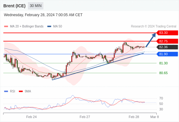 在 81.90 之上,看涨,目标价位为 82.75 ,然后为 83.30 。