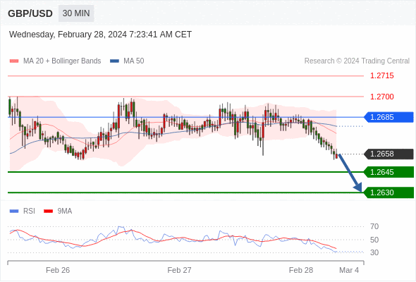 在 1.2685 之下,看跌,目标价位为 1.2645 ,然后为 1.2630 。