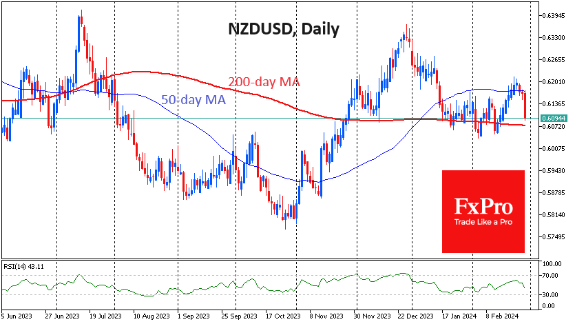 FxPro高级分析师Alex Kuptsikevich指出:同样值得记住的是,新西兰在这个周期加息了525个基点,这与美联储的紧缩相当,而大多数其他央行并没有进行如此大幅度的紧缩。