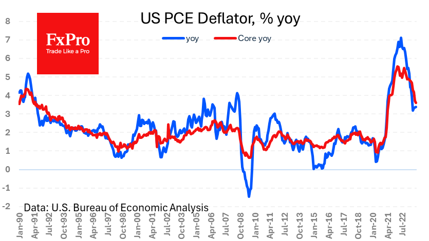 与此同时,支出没有加速增长,月同比增长了0.3%。与总收入增长4.8%和可支配收入增长4.5%相比,它们按年率增长了5.2%。一个令人担忧的结果是,3.6%的储蓄率约为疫情前水平的一半。但对市场的好消息是,这不会导致通胀加速,这意味着美联储不必对抗通胀并延迟政策宽松。