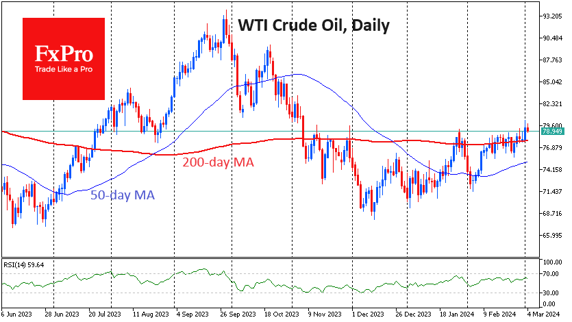 这可能是美国重获石油市场份额的黄金机会,但它并不急于这么做。周五的数据显示,石油钻探人数上升至506人。这是自去年9月以来的最高水平,但只比低点497套增加了9套,与其说是增长,不如说是停滞。就在一年前,也就是2023年1月,有623口油井和152口天然气井在运营,而现在只有123口。