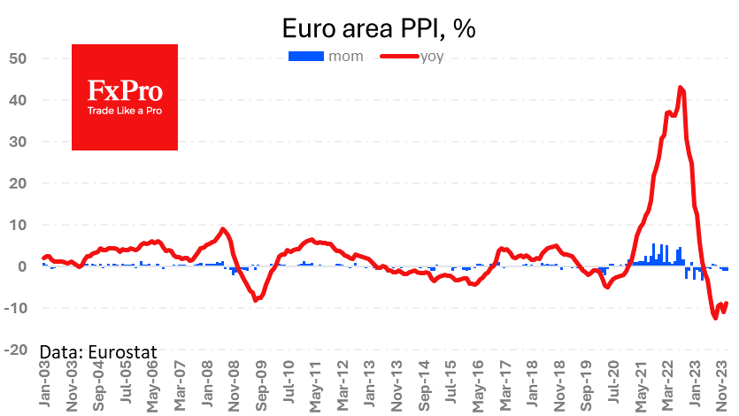 欧元区生产者价格在1月份下跌了0.9%,前一个月和11月份的跌幅为0.5%。分析师此前的平均预期是下跌0.1%。价格下跌和中国经济活动放缓也应该被视为一个因素使得欧洲价格承压。欧洲和美国都担心,由于生产过剩,价格将面临通缩压力。起初,大众不太在乎这种现象,因为他们可能喜欢更便宜的商品。从长期来看,通缩可能被视为经济疲软的迹象。