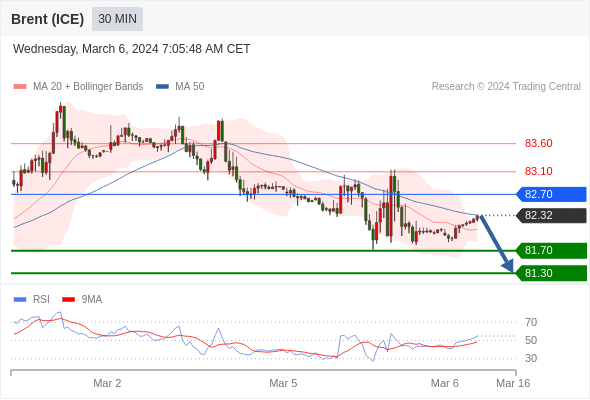 在 82.70 之下,看跌,目标价位为 81.70 ,然后为 81.30 。